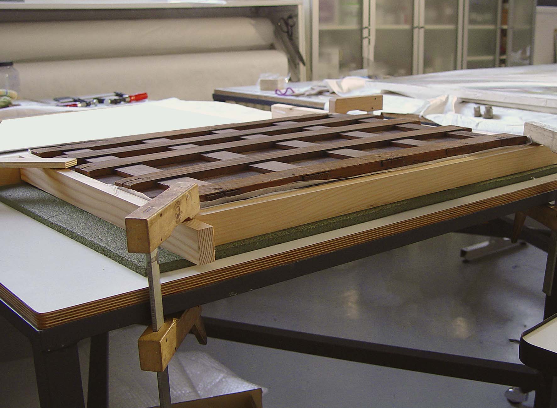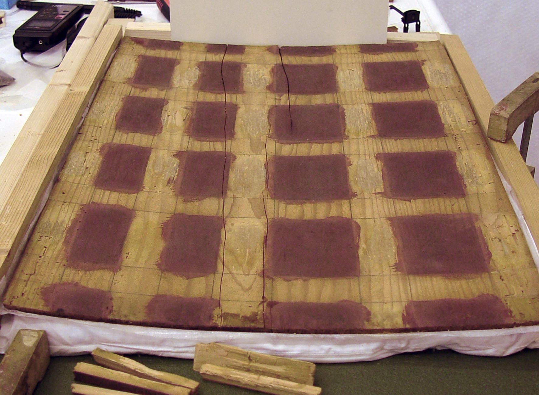 Die Nadelholztafeln waren parkettiert und mehrfach gerissen.