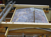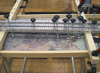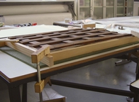 Die Krümmung der Teilstücke erforderte die Anfertigung passender Zulagen, um eine bündige Verleimung zu ereichen
