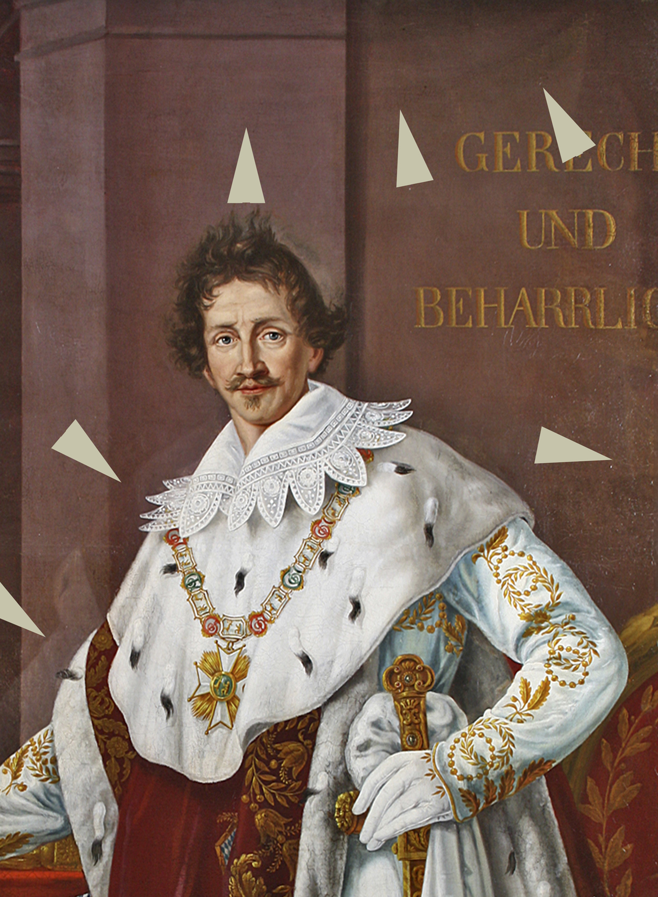 A similar curtain appears in another version of the crowning portrait of LudwigI. At the Städtische Sammlungen, Wasserburg.